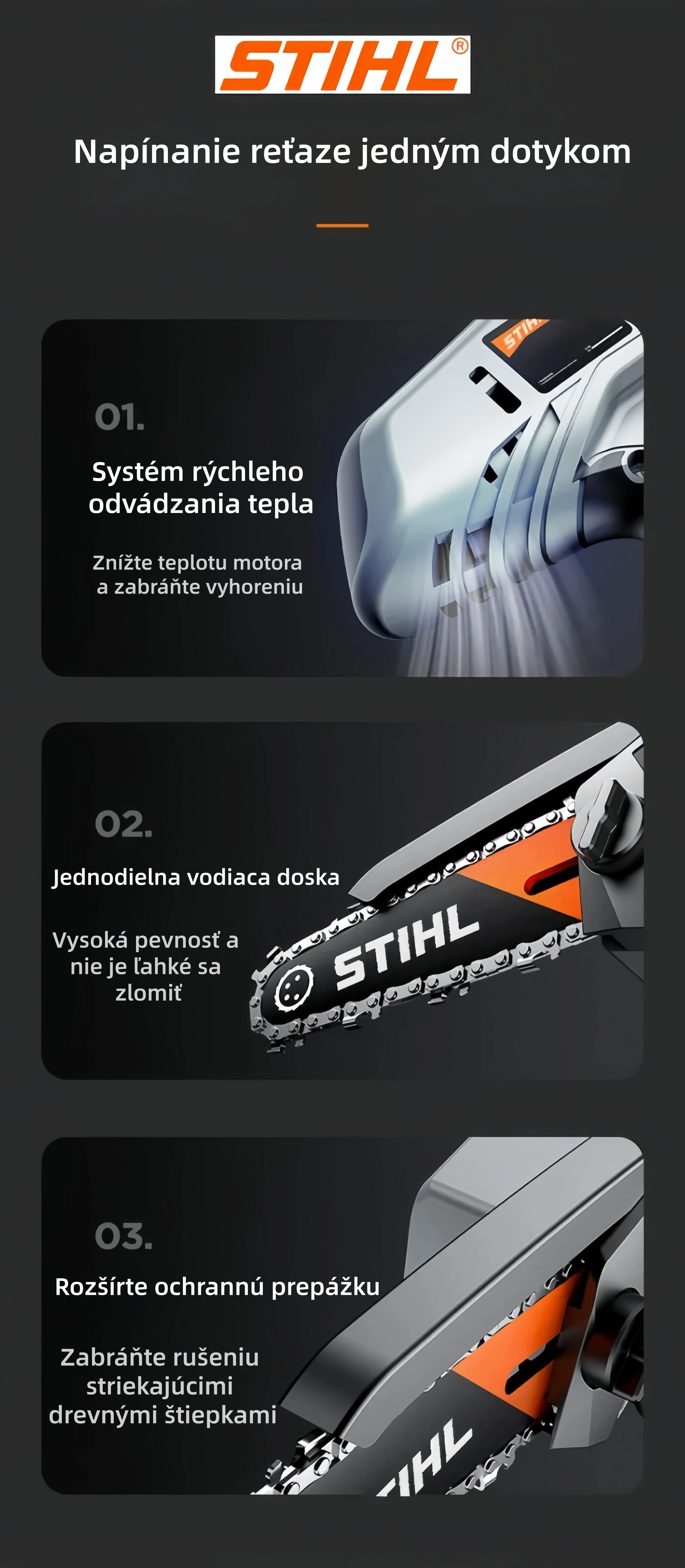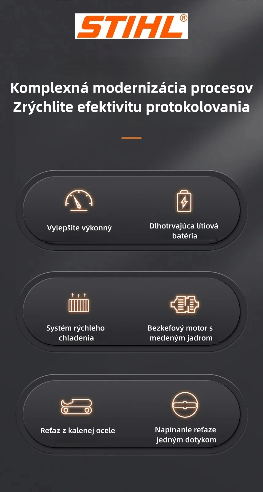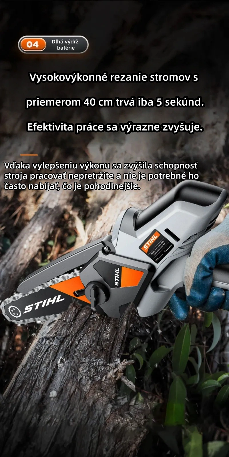 Spoločnosť Stihl bola založená v roku 1926 a je postavená na záväzku k remeselnej zručnosti a ľuďom, ktorí vyrábajú a používajú naše produkty. Bezuhlíková lítium-iónová elektrická píla, ktorú vyrábame, prešla desiatkami tisíc experimentov zo strany vývojového oddelenia STIHL, takže ju môžete s istotou používať!