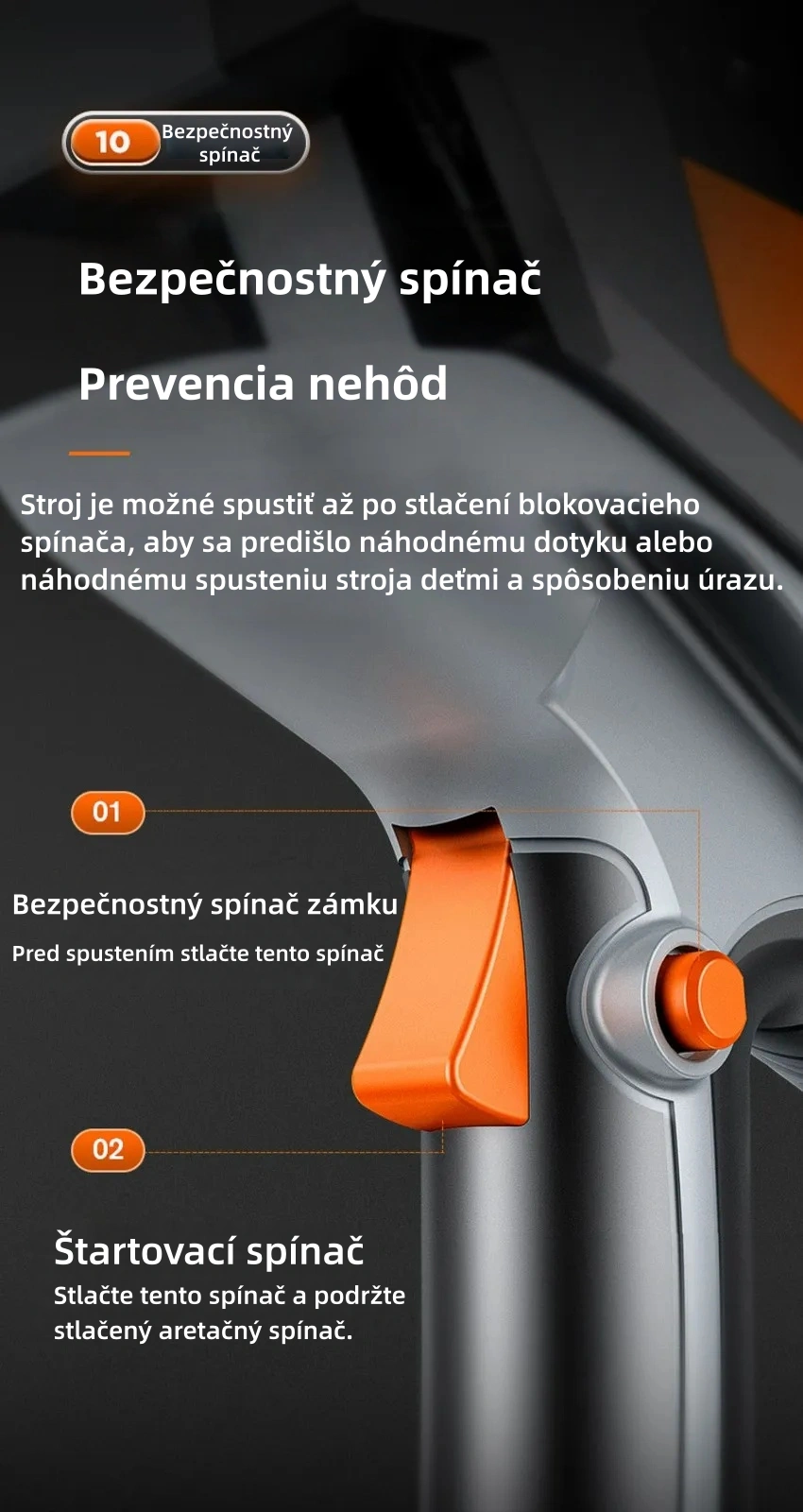 4-úrovňová nastavovacia páka, výška kosenia môže dosiahnuť 4,5-5 metrov